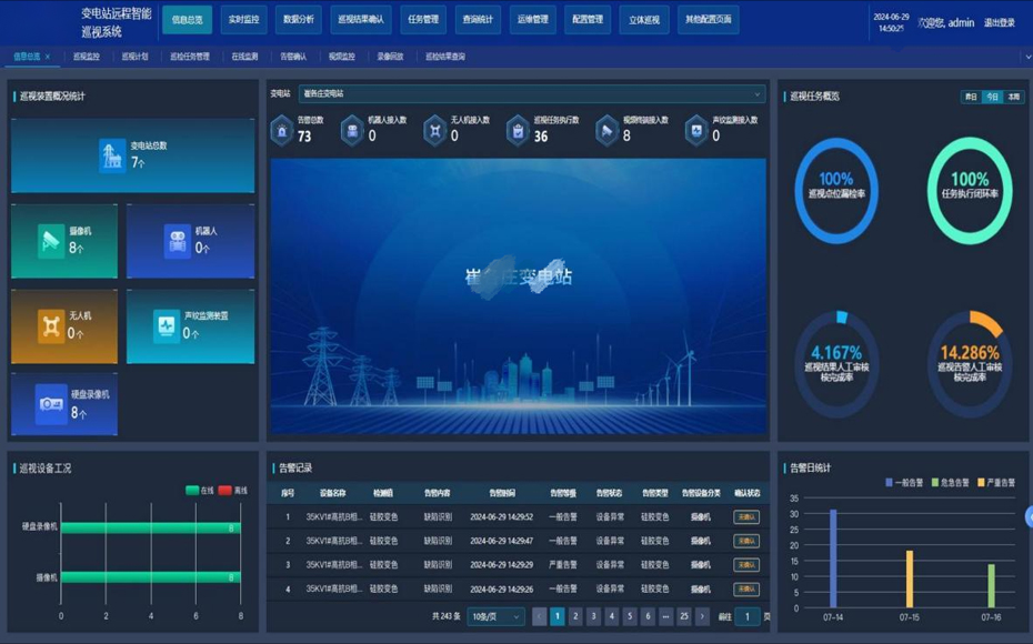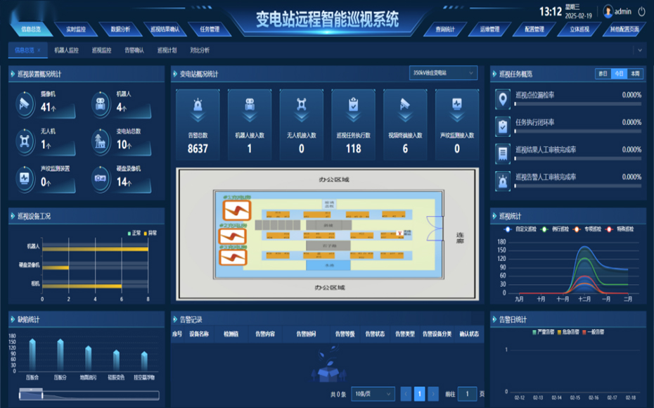 變電站遠(yuǎn)程智能巡視系統(tǒng)通過(guò)巡視主機(jī)、智能分析主機(jī),融合機(jī)器人、無(wú)人機(jī)、攝像機(jī)、聲紋監(jiān)測(cè)裝置等數(shù)據(jù)信號(hào),具備數(shù)據(jù)采集、自動(dòng)巡視、智能分析、實(shí)時(shí)監(jiān)控等功能,可實(shí)現(xiàn)站內(nèi)設(shè)備狀態(tài)全面感知、倒閘操作一鍵順控、主輔智能聯(lián)動(dòng)等功能,可有效提升電網(wǎng)運(yùn)維智能決策能力。