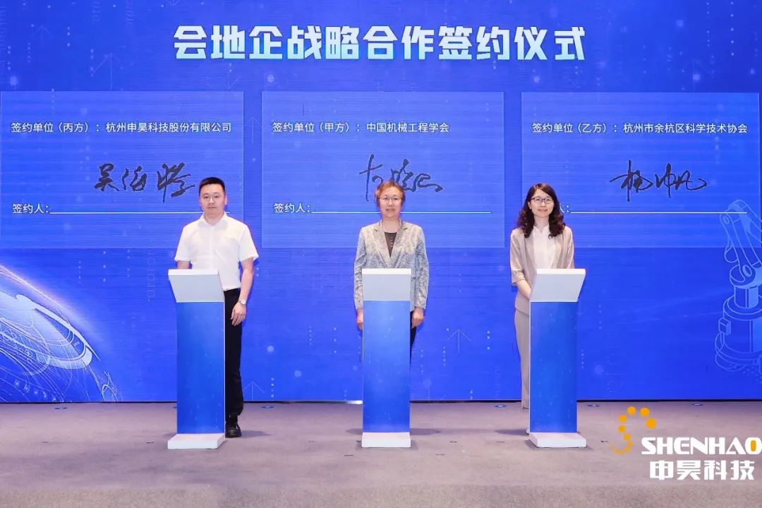 在智能制造數(shù)字化轉(zhuǎn)型與數(shù)字價值主題論壇中,申昊科技吳海騰副總經(jīng)理代表公司與中國機(jī)械工程協(xié)會、杭州市余杭區(qū)科學(xué)技術(shù)協(xié)會簽署了會地企戰(zhàn)略合作協(xié)議。