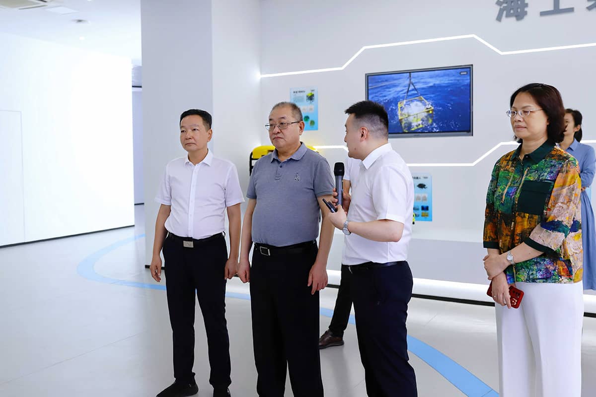 在調(diào)研過程中,吳海騰向各位領(lǐng)導(dǎo)闡述了實驗室的發(fā)展情況,并展示了實驗室各項成果,包括“申龍?zhí)枴彼聶C器人、三維聲吶、水下安防平臺等,并詳細(xì)匯報了人工智能產(chǎn)品在海洋測繪、海底資產(chǎn)數(shù)據(jù)發(fā)掘、低空經(jīng)濟發(fā)展等領(lǐng)域的創(chuàng)新技術(shù)和應(yīng)用。
