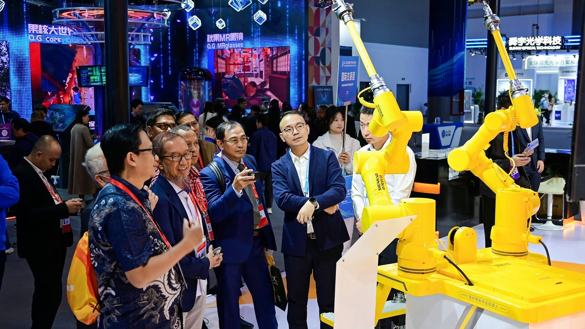 申昊科技攜豐富的人工智能機(jī)器人行業(yè)解決方案和最新研發(fā)成果驚艷亮相,不僅吸引了浙江省副省長(zhǎng)、省黨組成員盧山及相關(guān)領(lǐng)導(dǎo)的蒞臨指導(dǎo),還受到央視新聞、新華社、中國(guó)藍(lán)新聞、杭州日?qǐng)?bào)、廣東電視臺(tái)等多家媒體的報(bào)道,也引起了海內(nèi)外眾多觀眾的關(guān)注和興趣。
