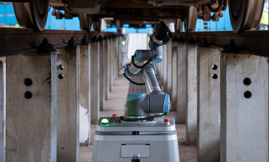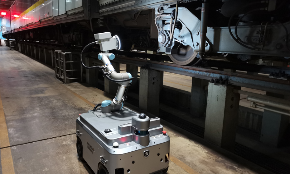 列車車底檢測(cè)機(jī)器人采用輪式運(yùn)動(dòng)平臺(tái)組合機(jī)械臂、視覺系統(tǒng)的方式,運(yùn)行于列車檢修地溝中,代替人工完成列車車底、車側(cè)外觀的檢測(cè)任務(wù),解決傳統(tǒng)人工檢測(cè)遇到的現(xiàn)場環(huán)境艱苦、勞動(dòng)強(qiáng)度大、受人員主觀因素影響等問題,從而降低檢修人員工作強(qiáng)度、提升檢修質(zhì)量,及時(shí)全面消除列車運(yùn)行安全隱患。
